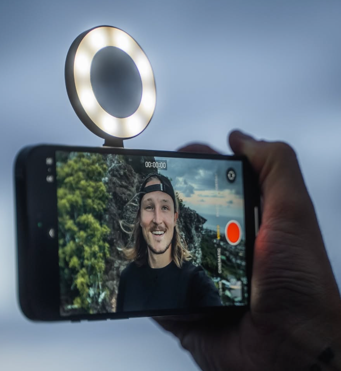 —The flip around ease of use for selfies is nice too. My only wish is that the brightest light settingโs output was greater for outside, daytime use on macro shots